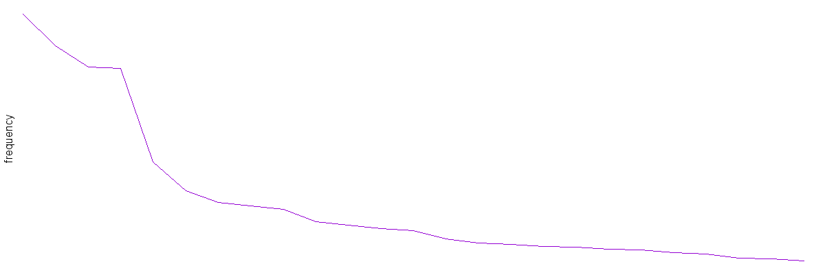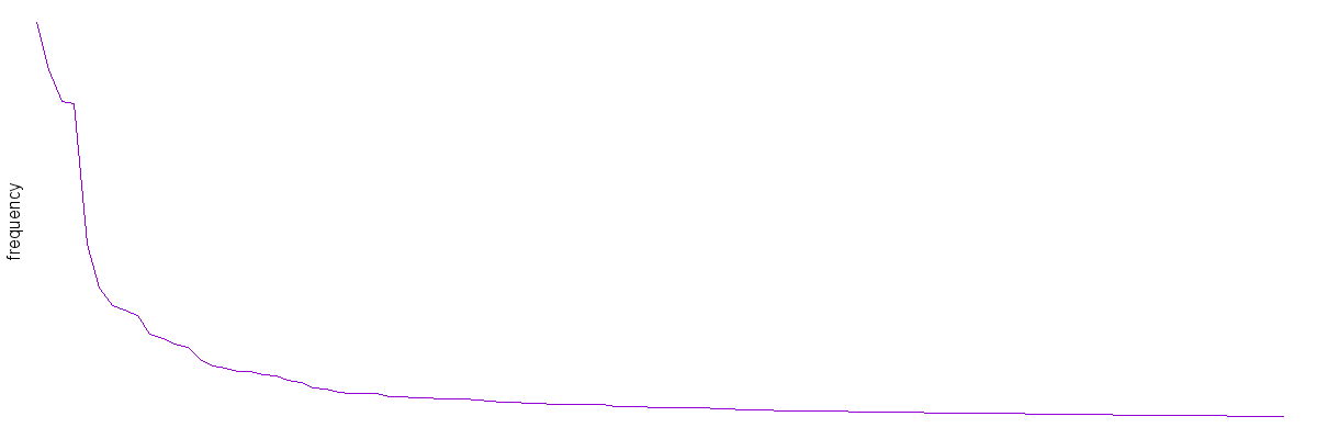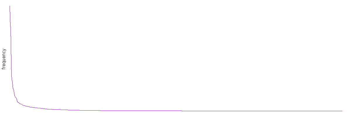 Here are successive graphs zooming in on the word frequencies. In each, I've ordered the expressions by frequency and plotted the frequency. Notice the nice long tail curve.