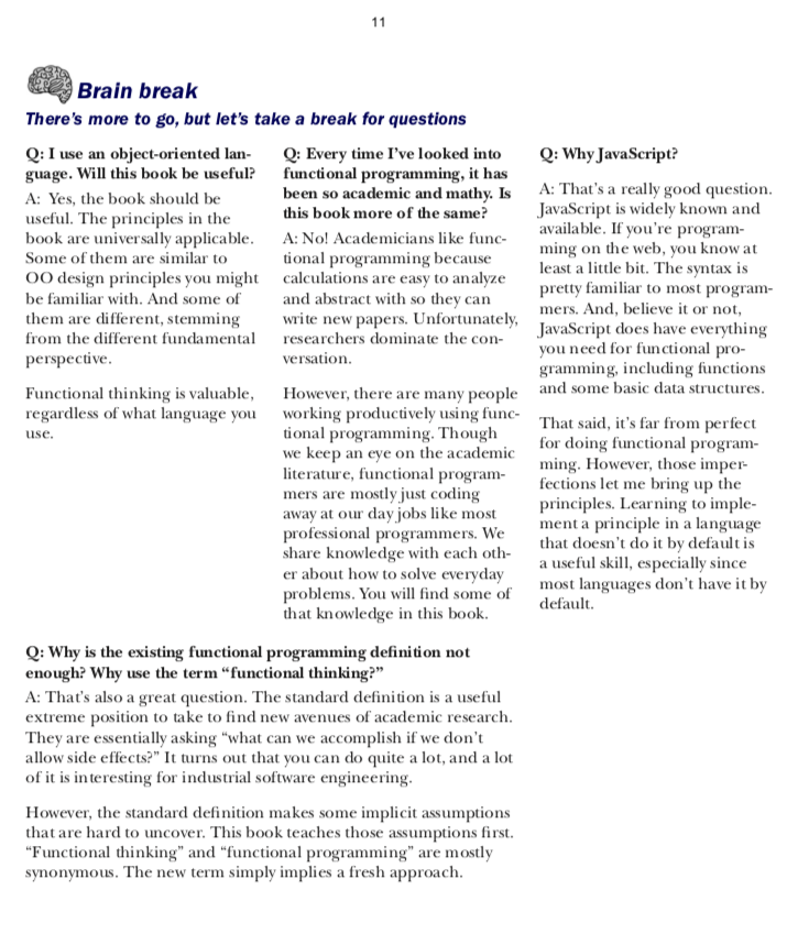 Grokking Simplicity teaches functional programming in a friendly way, to those who are not familiar with it or who were turned off by the overly academic resources.
